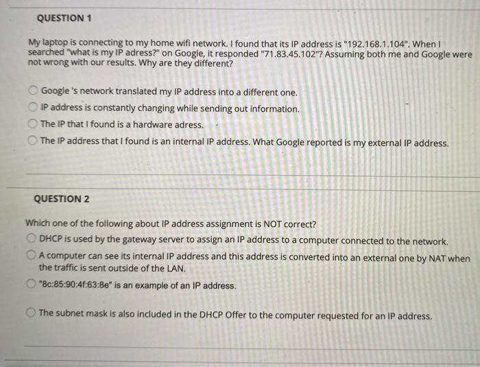 Solved Question 1 My Laptop Is Connecting To My Home Wifi Chegg Com